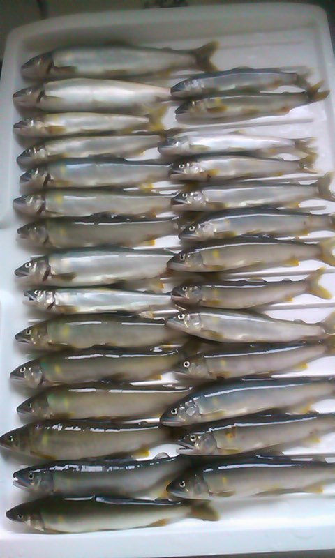 • 釣果:アユ28匹(12〜18cm)